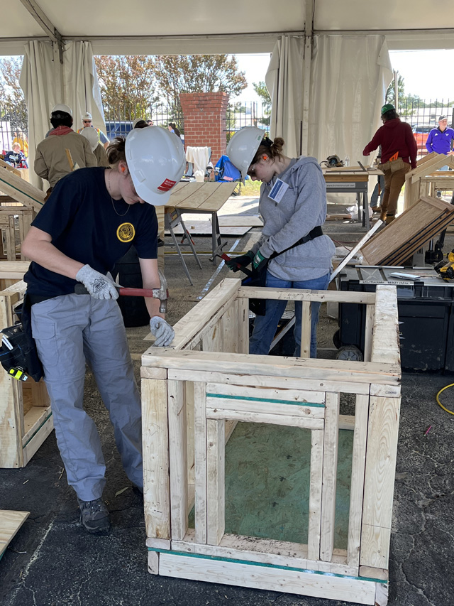 The North Carolina Home Builders Association partnered with Apprenticeship NC, Builders Mutual and 84 Lumber to sponsor the annual Carpentry Pre-Apprentice Contest held on Thursday, October 19 at the NC State Fair. Students representing several high schools from across the state competed to display their carpentry skills. Students measured, cut, and hammered to construct a doghouse within a 4-hour timeframe.