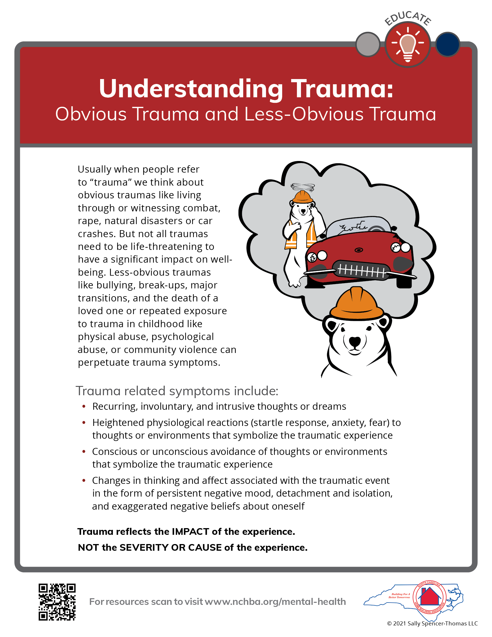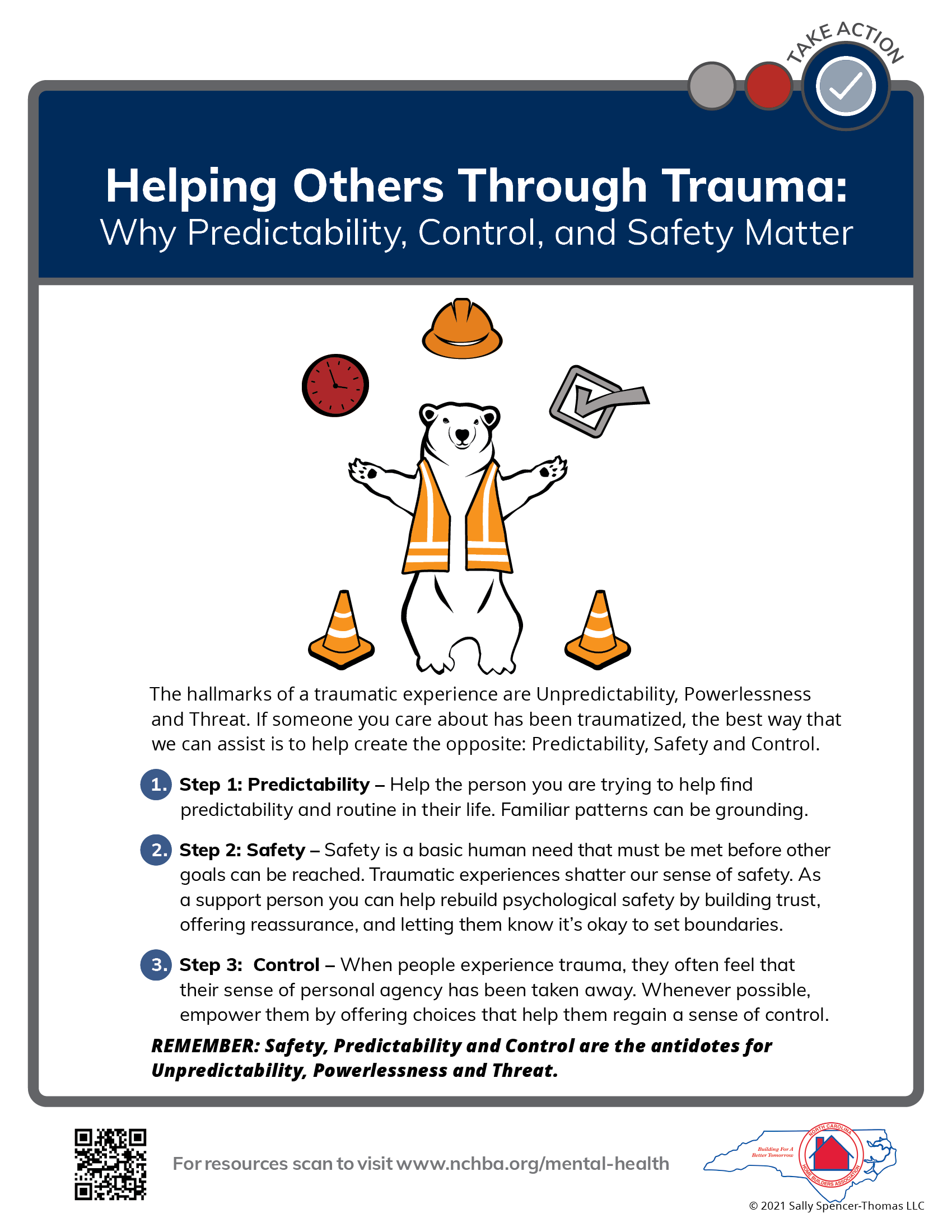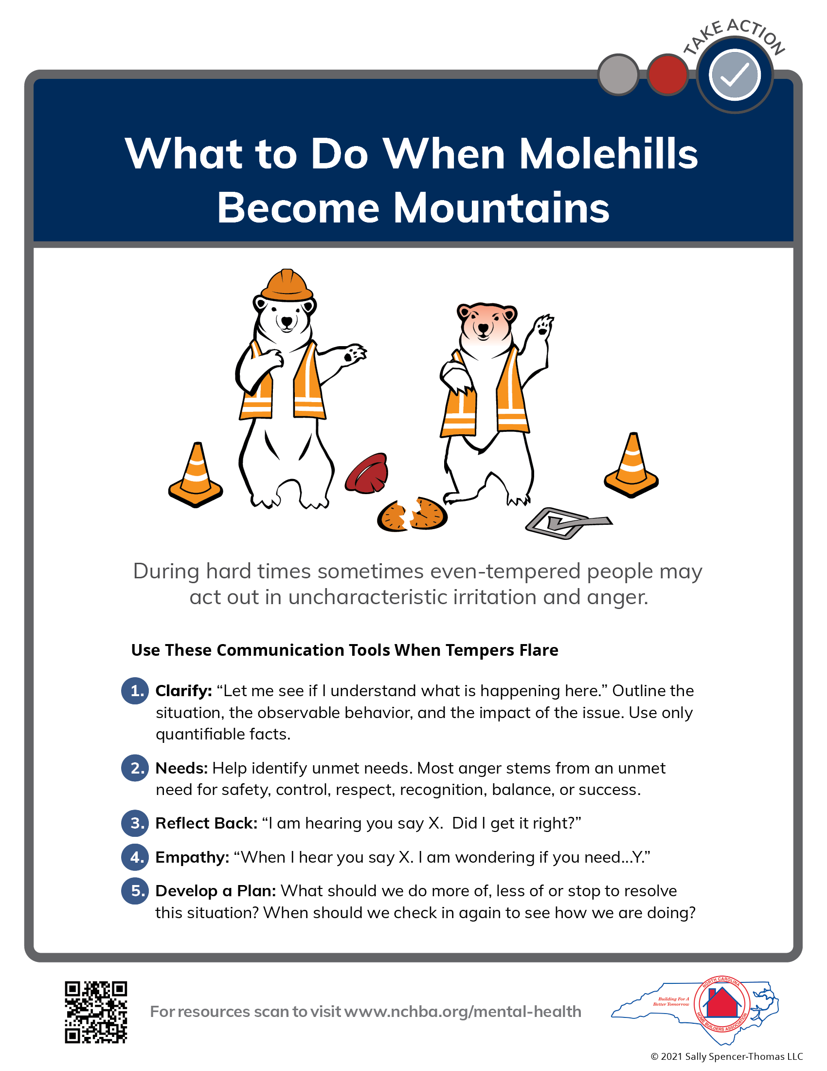 NCHBA is partnering with NAHB and the Job-Site Safety Institute to launch a Member Mental Health and Wellness Initiative. As part of this initiative, over the next several weeks NCHBA will release new Toolbox Talks that provide simple, digestible action steps you can easily take to help yourself or those on your jobsite in regards to their mental health and resilience needs.